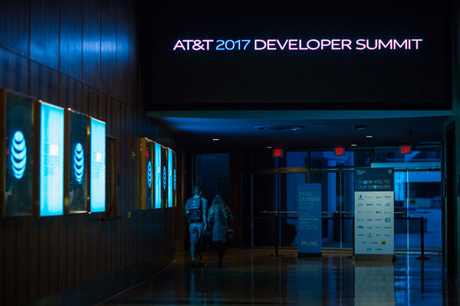 Palms Casino Resort sign welcomes all to the 2017 AT&T Developer Summit.