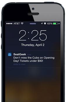 For example, if we wanted to send a push notification about tickets for Opening Day at Wrigley Field, we would want to send it to users who have: